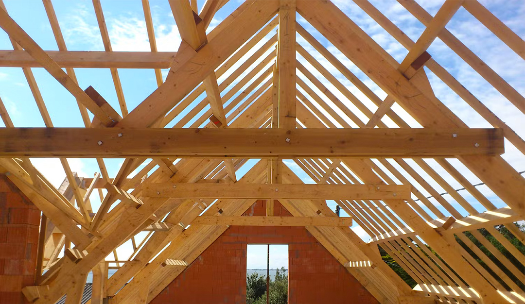 Fabriquée en bois massif, la charpente traditionnelle est très répandue dans les maisons anciennes ou de caractère. Elle offre une grande solidité et permet souvent l’aménagement des combles grâce à sa structure apparente.